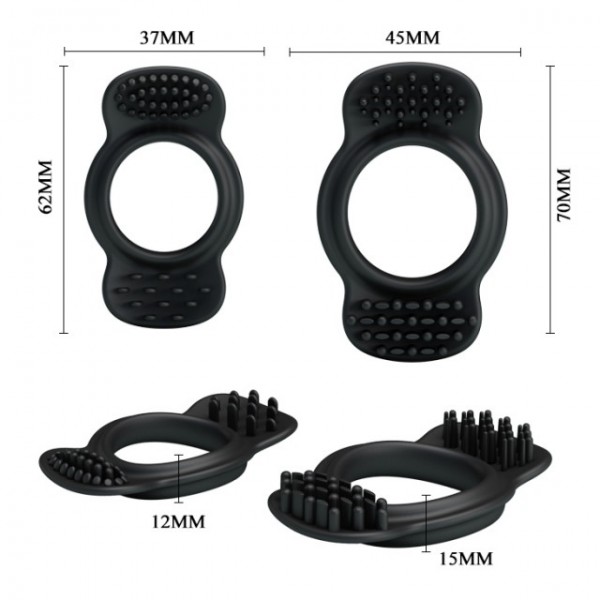 Выполнены кольца из медицинского силикона в черном цвете. Эластичные, прекрасно расстягиваются, не пережимают и не передавливают половой член